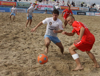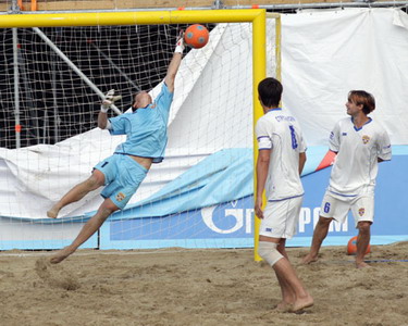 Первая четверка действующих чемпионов России как всегда предпочитала играть верхом и проводила отличные комбинации, и если бы не Дмитриев, регулярно читавший множество верховых передач, то голов было бы еще больше. Востриков забил еще раз под конец периода – мяч после его удара со штрафного, ударившись о песок, перепрыгнул Игнатьева. Во втором периоде ситуация для «Мишина и Ко» еще более усугубилась - «Строгино» снова забило в середине и концовке тайма. Дважды был точен Юрий Котов. Первый свой гол он оформил после индивидуального прохода, а вот во втором эпизоде – отлично завершил комбинацию с участием Вострикова и Полякова.