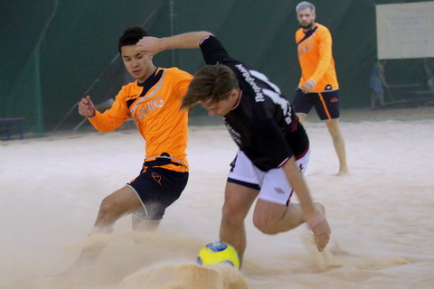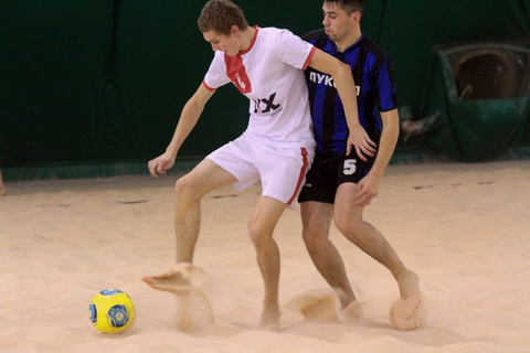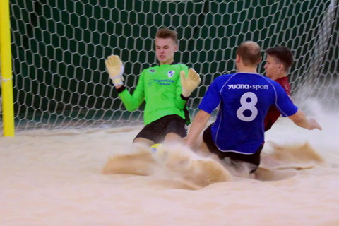 Во втором периоде подопечные Левина сражались восемь минут, а затем временно утратили концентрацию, выпустив соперника вперед. Сначала Виталий Иванов пробил от своих ворот, Туханцев зарыл видимость голкиперу соперника, и мяч от песка влетел в сетку. Сразу же Роман Туханцев забил третий мяч, без проблем замкнув прострел партнера.