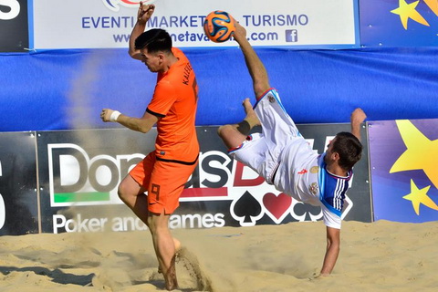 Характер игры во втором периоде не изменился, вновь создав россыпь моментов в стартовые минуты, россияне ограничились лишь одним голом после бисиклеты Макарова. Будь Алексей поудачливей он вполне мог бы записать на свой счет хет-трик,но в одном эпизоде не попал в створ, а в другом моменте прекрасно сыграл голкипер Нидерландов. Спас Ран свои ворота и после убойной бисиклеты Шишина, ногой отбив мяч.