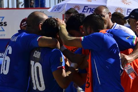 Итальянцы воспользовались осечкой россиян, единолично возглавив первую группу. В отличие от матча первого тура поединок с французами легкой прогулкой не получился. Завершив первую двенадцатиминутку вничью, «скуадра адзура» вышла вперед во втором периоде благодаря точному удару своего голкипера Спады. В заключительной трети матча, поведя 3:1, подопечные Эспозито, едва не позволили "трехцветным" свести поединок к ничьей. После того как Файос сократил разрыв в счете до минимума, французы имели пару отличных моментов для того,чтобы сравнять счет. Но сборная Италии, на глазах у бешено поддерживающих капитана местной «Катании» друзей и родственников Джузеппе Платании, отстояла минимальное преимущество, на пару со Швейцарией возглавив сводный рейтинг Евролиги 2014.