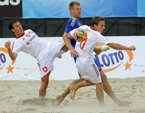 Стартовый поединок второго игрового дня между сборными Швейцарии и Украины, несмотря на абсолютно непляжную погоду, держал немногочисленную публику, рискнувшую-таки уделить время весьма диковинному для этих мест зрелищу, в постоянном напряжении от первой до последней минуты.