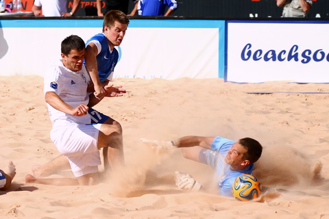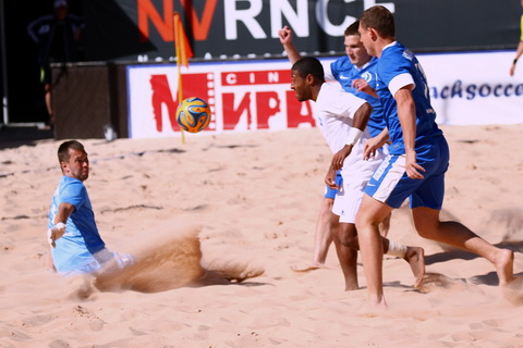 К концу основного времени матча в действиях обеих команд явно читалось согласие с ничейным исходом, который по новому регламенту обеспечмвал, как минимум, очко каждому из соперников. Лишь бразильцы, словно не ведая усталости, продолжали вытаптывать песок у штрафной «Динамо». В результате за минуту до истечения основного времени матча, Катарино изящно скинул мяч головой в штрафную, и Игорь Бриштель, на долю секунды опередив голкипера с защитником, переправил мяч в сетку, принеся победу команде Евгения Храмова.