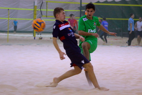 Уже на первой минуте «мозг» атак «зеленых» Александр Мельников завершил быструю комбинацию, ловко подставившись под прострел партнера. Он же несколько минут спустя, находясь в окружении двух защитников соперника, классно принял мяч на грудь и, не давая ему опуститься, мягко перекинул вратаря «синих». Александр довольно быстро смог провести и третий свой мяч, здорово открывшись, и слету переправив передачу партнера из аута в угол «автовских» ворот.