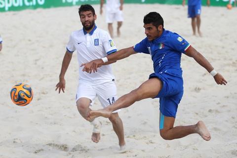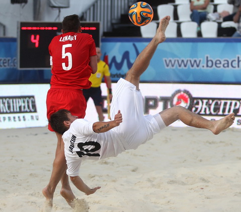 Естественно, россияне горели желанием реабилитироваться перед своими болельщиками, и сделать это предстояло в матче с давно не блещущими на европейских пляжных аренах «трехцветными». И хотя моментов у сборной России в первом периоде было предостаточно, но гол был забит лишь один. Иван Островский ударом от своей вратарской открыл счет в матче. При этом Иван не забывал и о своих прямых обязанностях, в частности отразив опасную бисиклету Барботти.