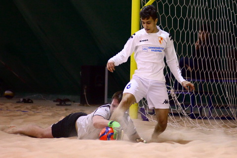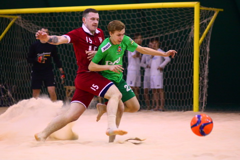 А пока «красные» давали играть «звездным», те сполна этим пользовались , и сначала на третьей минуте Букин ударом от бархана вывел «белых» вперёд, а ещё же через минуту Гнедов удвоил преимущество своей команды. Он же через пять минут со штрафного в третий раз заставил капитулировать стража ворот «красных». «Студия» же, как уже отмечалось выше, опомнилась лишь пропустив три безответных мяча, но за оставшиеся до перерыва три минуты они создали уйму моментов, но Туров был на высоте и постоянно отражал, то удары Листратова от песка, то мощные выстрелы Корсакова.