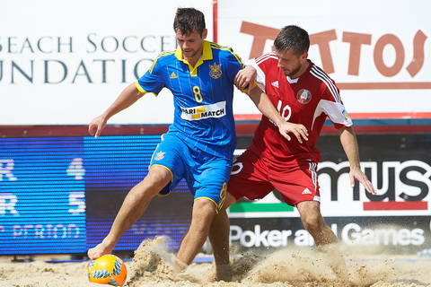 Свой поединок на раскаленном песке в сицилийский зной сборные Беларуси и Украины начали в достаточно спокойном темпе. Подопечные Марко Октавио не стали традиционно использовать тактику «второго номера». Бриштель с Самсоновым поочередно «терроризировали» защитные порядки «синих», но открыли счет украинцы. Зборовский, по обыкновению возникнув как чертик из табакерки перед белорусским голкипером, переправил мяч в сетку мимо Макаревича. Но тут же Самсонов восстановил равенство в счете, воспользовавшись грубейшей ошибкой Сидоренко, не сумевшего поймать мяч.
