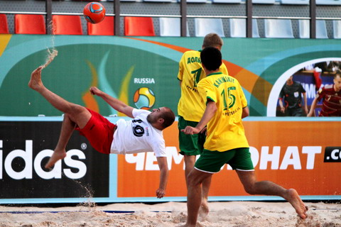 Начало матча получилось богатым на забитые голы. Уже на первой минуте Антон Куратник замкнул точную передачу в исполнении Сергея Шевкунова, открыв счет в матче и прервав голевую засуху своей команды, длившуюся более семидесяти двух минут. «Golden» тут же ответил результативным розыгрышем углового удара, после которого Тимур Кучкаров в своем стиле забил ответный мяч. Соперники даже и не думали сбавлять скорости, продолжая играть в открытый футбол. На пятой минуте защитник «Зевса» - Дмитрий Викторов удачно подключился к атаке и сильным ударом с отскоком от песка, вновь вывел свою команду вперед в счете.