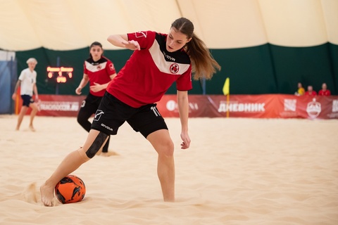 Игра началась с активных взаимных атак обеих команд. Сборная России постепенно начала усиливать давление на соперниц, однако «Звезда» ответила результативной контратакой. Оксана Боброва отобрала мяч у Горшковой, переиграла Дарью Шквару и открыла счёт благодаря песчаному бархану, впервые поразив ворота Виктории Силиной, которая три тура сохраняла свои владения «сухими», а все пропущенные мячи команды пришлись на Акылбаеву.