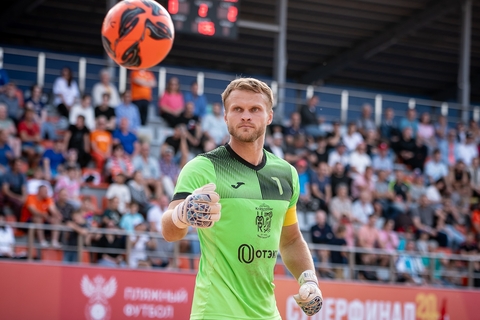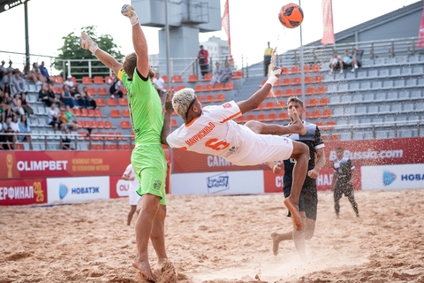 Спустя один оборот секундной стрелки Волков не лучшим образом вернул мяч партнёру, и Фёдоров перехватил мяч, после чего добежал до центра площадки и пробил по воротам Пархоменко. Кожаная сфера аккурат перед Пархоменко ударилась об песок, изменила траекторию и юркнула в ворота — 2:0.